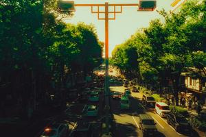 A quiet moment inside the constant movement of the city. Warm light falls through the trees while traffic and people pass below, turning an ordinary street into a slow, cinematic scene where time feels suspended.